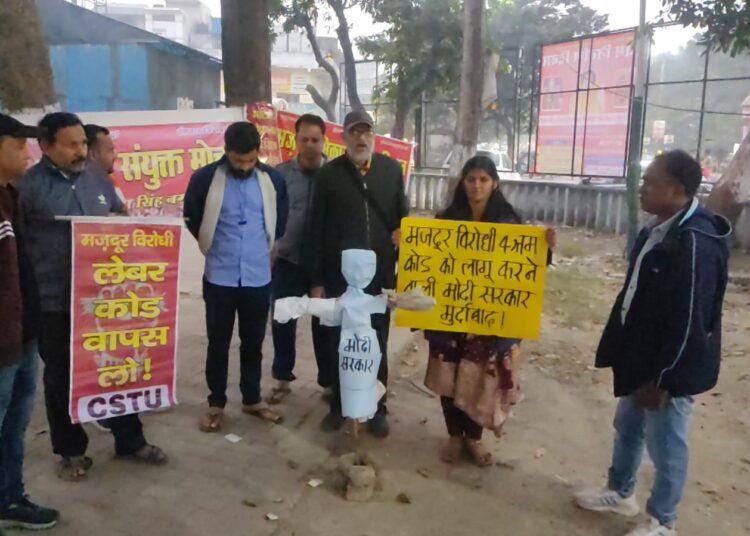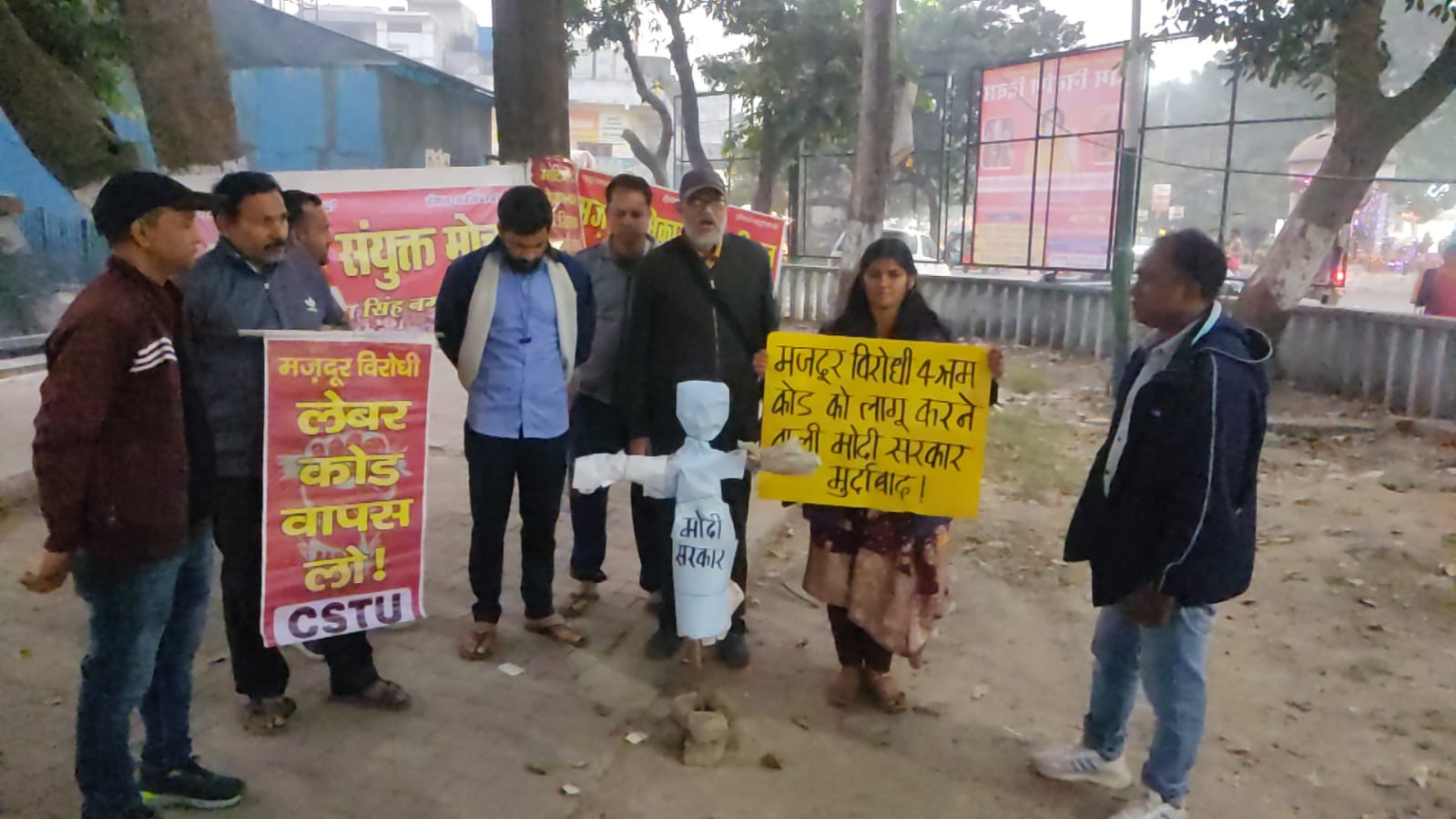 हठधर्मिता के साथ मज़दूर विरोधी लेबर कोड लागू करने के खिलाफ मोदी सरकार का पुतला दहन
