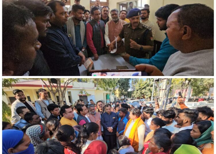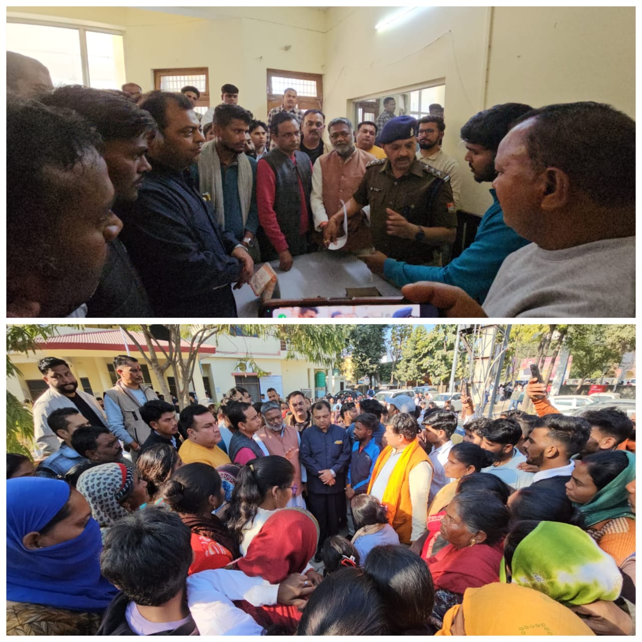 खटीमा, में देर रात्रि हुए हत्याकांड के संबंध में भारतीय जनता पार्टी के कार्यकर्ताओं ने एवं स्थानीय व्यापारियों ने खटीमा कोतवाल एवं पुलिस क्षेत्र अधिकारी से मिलकर शीघ्राती शीघ्र इस हत्याकांड के आरोपियों को गिरफ्तार करने एवं कठोर से कठोर कार्रवाई करने की मांग की नगर पालिका अध्यक्ष रमेश चंद्र जोशी के नेतृत्व में स्थानीय व्यापारियों एवं भारतीय जनता पार्टी के कार्यकर्ता पीड़ित व्यापार के परिवार से मिले एवं उनको आश्वस्त किया कि भारतीय जनता पार्टी एवं स्थानीय व्यापारी पीड़ित परिवार के साथ है साथ ही अपील की की इस हत्याकांड को सांप्रदायिक रूप न दिया जाए नगर पालिका अध्यक्ष रमेश चंद्र जोशी के नेतृत्व में स्थानीय प्रशासन से मांग की गई की यदि हत्याकांड की आरोपियों को शीघ्र रफ्तार नहीं किया गया और हत्याकांड का पर्दाफाश नहीं किया गया तो भाजपा कार्यकर्ता एवं व्यापारी सड़कों पर आंदोलन करने के लिए बाध्य होंगे स्थानीय प्रशासन ने आश्वासन दिया कि किसी भी कीमत पर कोई भी दोषी बख्शा नहीं जाएगा दोषियों के खिलाफ हर संभव कड़ी से कड़ी कार्रवाई की जाएगी साथ ही उनका सहयोग करने वालों के खिलाफ भी कठोर से कठोर कार्रवाई करने के को लेकर एसपी सिटी डॉक्टर उत्तम सिंह नेगी ने आश्वासन दिया, हत्याकांड के विरोध में स्थानीय प्रशासन से मिलने वाले प्रतिनिधि मंडल में मुख्य रूप से पूर्व छात्र संघ अध्यक्ष गणेश ठुकराती, पूर्व छात्र संघ उपाध्यक्ष मनोज वाधवा एवं हिमांशु बिष्ट सभासद नीरज रस्तोगी लक्ष्मण भंडारी सतीश गोयल किशन सिंग किन्ना भुवन जोशी दीपक तिवारी नवल वाल्मीकि व्यापारी नेता तरुण ठाकुर महेंद्र ठाकुर विजय गुप्ता आदि शामिल थे