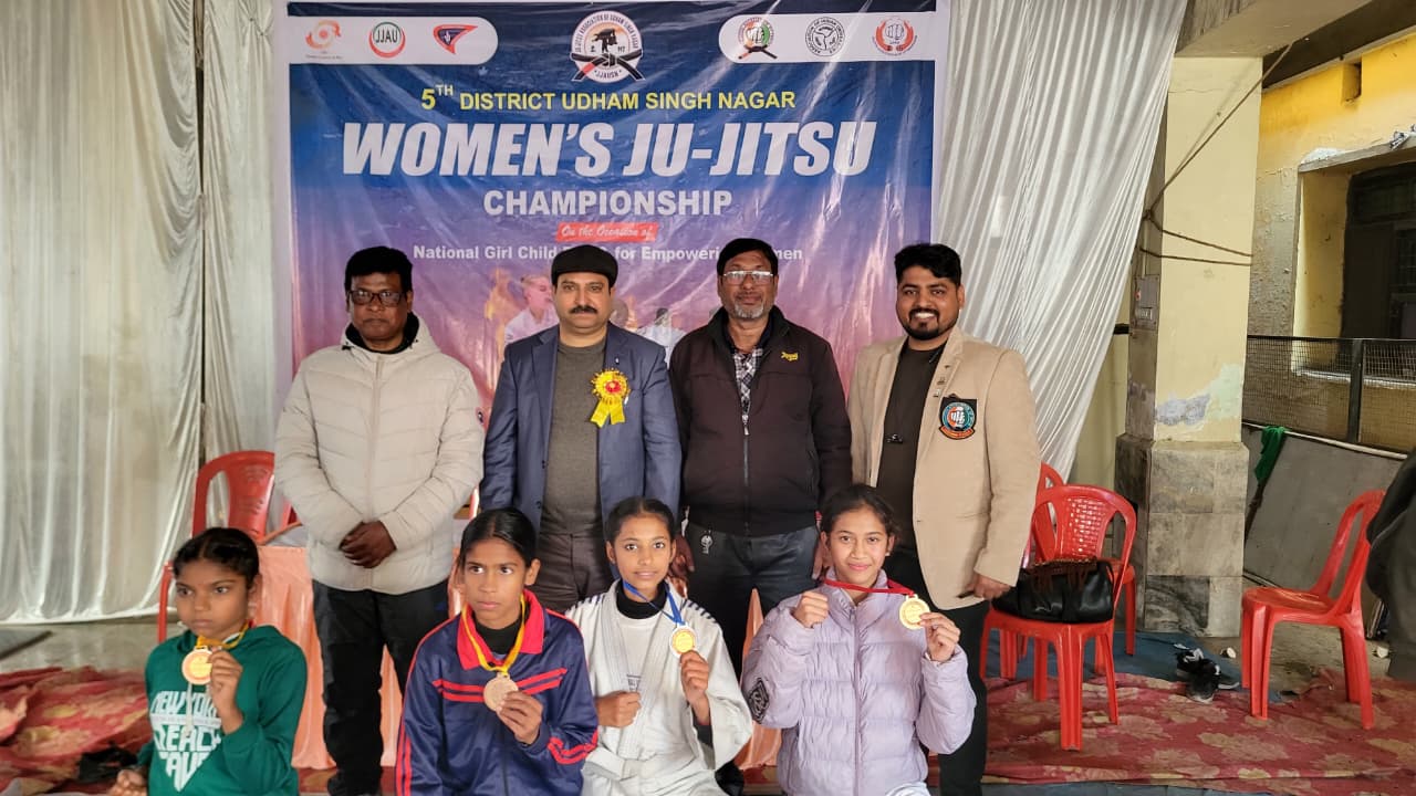 रुद्रपुर, उधम सिंह नगर। जिला जु–जित्सू एसोसिएशन ऑफ उधम सिंह नगर (रजि) की ओर से श्री दुर्गा मंदिर धर्मशाला के हाल में आयोजित हुई 5वीं निःशुल्क जिला स्तरीय महिला जु–जित्सू प्रतियोगिता संपन्न हुई। जिसका शुभारंभ बतौर मुख्य अतिथि जिला जु-जित्सू एसोसिएशन के अध्यक्ष भारत भूषण चुघ, विशिष्ठ अतिथि पूर्व जिला आपदा प्रबंधन अधिकारी डॉ. अनिल शर्मा, जिला जु-जित्सू ऐसोसिएशन के महासचिव ऋषि पाल भारती, कोषाध्यक्ष किशोर सिंह, उपाध्यक्ष जॉनी हीराम तिग्गा ने किया।