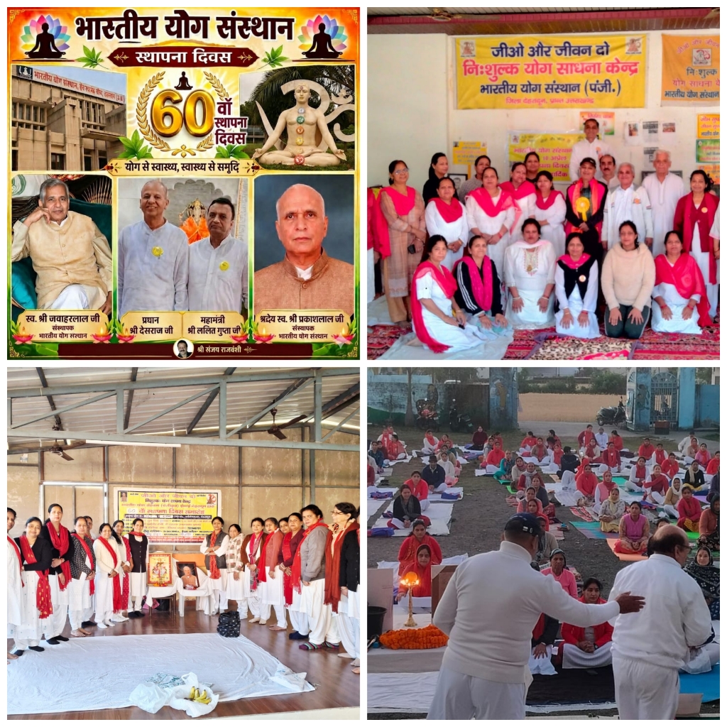 देहरादून,महोदय जी भारतीय योग संस्थान का 60 स्थापना दिवस समारोह पूरे भारत और विदेश के साथ प्रांत उत्तराखंड के हरिद्वार जिला , काशीपुर जिला, रुड़की जिला, रुद्रपुर जिला, बाजपुर जिला, किच्छा, एवम् प्रांत उतरा खंड के देहरादून के गांधी पार्क केन्द्र में,राज राजेश्वरी पब्लिक स्कूल,करनपुर आर्य समाज मंदिर, करणपुर बाज़ार के योग आश्रम , एस,बी, आई कलोनी शिमला बाई पास,एवम् अन्य कई केन्द्रों पर दीप प्रज्ज्वलित कर शुरू किया गया जिसमें प्रकाश लाल को ओर जवाहर लाल को याद कर नमन किया गया ओर इन दो महान विभूतियो ने आज साठ साल पूर्व दिल्ली में एक निशुल्क योग साधना केन्द्र का शुभारंभ किया ओर भारतीय योग संस्थान के नाम से इसका लोकार्पण किया ओर धीरे धीरे केन्द्रों की संख्या बड़ती चली गई और आज 23 प्रान्तों एवम् विदेशो में 4500 हजार केन्द्रों के माध्यम से नित्य प्रतिदिन योगाभ्यास प्राणायाम और ध्यान के अभ्यास से कई हज़ारों केंद्रो में आए हुए साधक साधिकाओ को रोग मुक्त करके एक खुशहाल जीवन व्यतीत करने की कला सीखा कर निष्काम कर्म को धारण सर्वे भवंतु सुखी ना की मंगल कामना करते हैं सभी सुखी हो स्वस्थ रहें निरोग रहे*