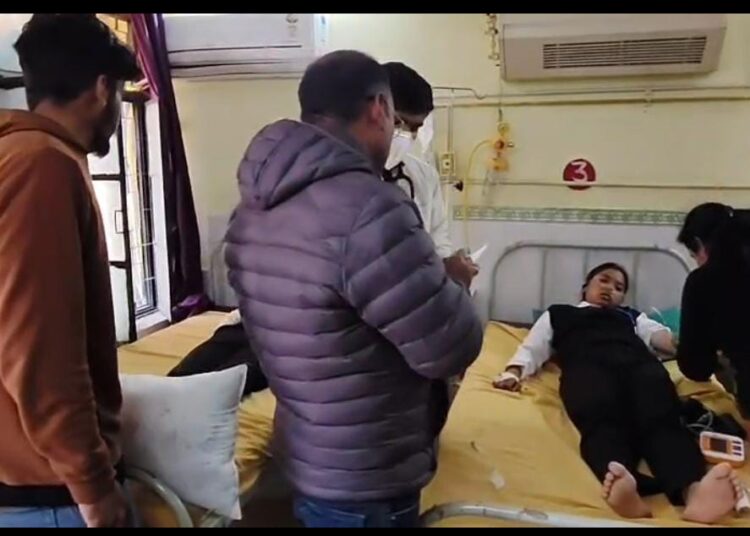मचा हरकंप लोहाघाट उप जिला चिकित्सालय में चल रहा उपचऱ लोहाघाट के रा 0पॉलिटेक्निक में आज शनिवार को फार्मेसी प्रथम वर्ष की छात्राएं अपनी शिक्षिका के साथ प्रेक्टिकल कर रही थी। तभी अचानक इस दौरान पास में ही रखी हुई ऐसीटल क्लोराइड केमिकल की बड़ी बोतल जमीन में गिर गई और फट गई। केमिकल की तीखी गंध से प्रेक्टिकल कर रही सात छात्राओं सहित शिक्षिका बेहोश हो गई। अचानक हुई इस घटना से रा0 पॉलिटेक्निक में हड़कंप मच गया। आनन फानन में रा0 पॉलिटेक्निक के शिक्षकों के द्वारा सभी गंभीर रूप से बीमार छात्राओं व शिक्षिका को वाहन के जरिए लोहाघाट उप जिला चिकित्सालय पहुंचाया गया। जहां चिकित्सा अधीक्षक डॉक्टर विराज राठी के नेतृत्व में सभी गंभीर रूप से बीमारो का उपचार चल रहा है। डाक्टर विराज राठी ने बताया एसीटल क्लोराइड के प्रभाव से सात छात्राओं के साथ-साथ एक शिक्षिका भी गंभीर रूप से बीमार हो गई है। उन्होंने बताया केमिकल के प्रभाव से उन्हें सांस लेने में दिक्कत व जलन, बेहोशी खांसी तथा आंखों में जलन की शिकायत हो रही है। डॉ राठी ने बताया सभी का उपचार किया जा रहा है तथा ऑक्सीजन दी जा रही है। जिसमें दो की हालत गंभीर बनी हुई है।उन्होंने बताया केमिकल के प्रभाव से शिक्षिका शैलजा , छात्रा गरिमा, निकिता, गुंजन ,काजल ,दिया, संजना, शिवानी बीमार पड़ी है जिनका उपचार किया जा रहा है। उपचार मे फिजिशियन डॉक्टर राकेश जोशी, डॉक्टर ज्ञान प्रकाश ,डॉक्टर रितु आदि के द्वारा उपचार किया गया। रा0 पॉलिटेक्निक के शिक्षक कमलेश कुमार आजाद ने बताया आज जब फार्मेसी प्रथम वर्ष की छात्राएं प्रैक्टिकल कर रही थी तभी ऐसीटल क्लोराइड केमिकल की बोतल गिर कर फट गई। केमिकल के प्रभाव से फार्मेसी के आठ बच्चे व एक शिक्षिका बीमार हो गई। जिन्हें लोहाघाट जिला चिकित्सालय लाया गया।इस दौरान पॉलिटेक्निक के शिक्षक मनीष भट्ट, डॉक्टर कमलेश आजाद ,अनिल रौतेला ,विवेक मौर्य ,डीके शर्मा आदि मौजूद रहे। फिलहाल घटना से हड़कंप मचा हुआ है। कई अन्य छात्राओं में भी हल्का प्रभाव देखने को नजर आ रहा है