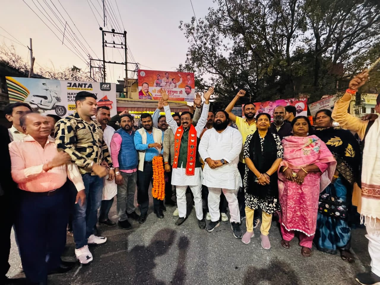 मुख्य चौराहे पर मिष्ठान वितरण कर कार्यकर्ताओं ने मनाई ऐतिहासिक विजय।