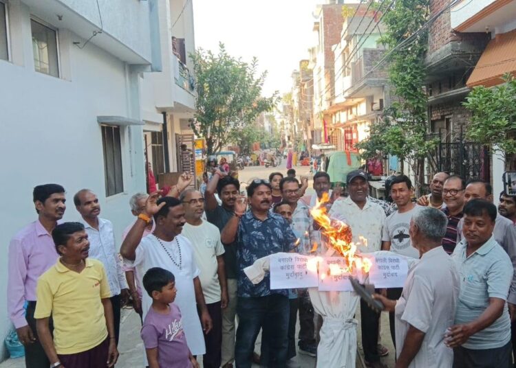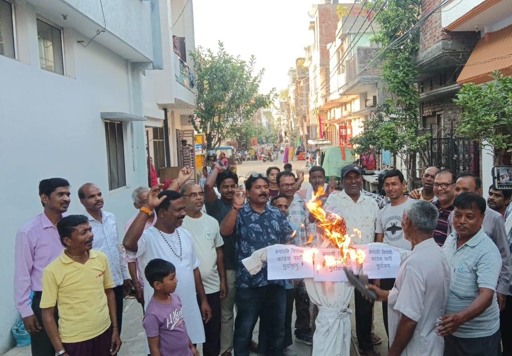 रुद्रपुर। लगातार दूसरे दिन भी बंगाली समाज में दिखा भारी आक्रोश, आदर्श इंद्रा बंगाली कॉलोनी में प्राइमरी स्कूल के निकट बंगाली समाज के लोगों ने कांग्रेस प्रदेश अध्यक्ष गणेश गोदियाल व कांग्रेस पार्टी का पुतला जलाकर विरोध जाता।