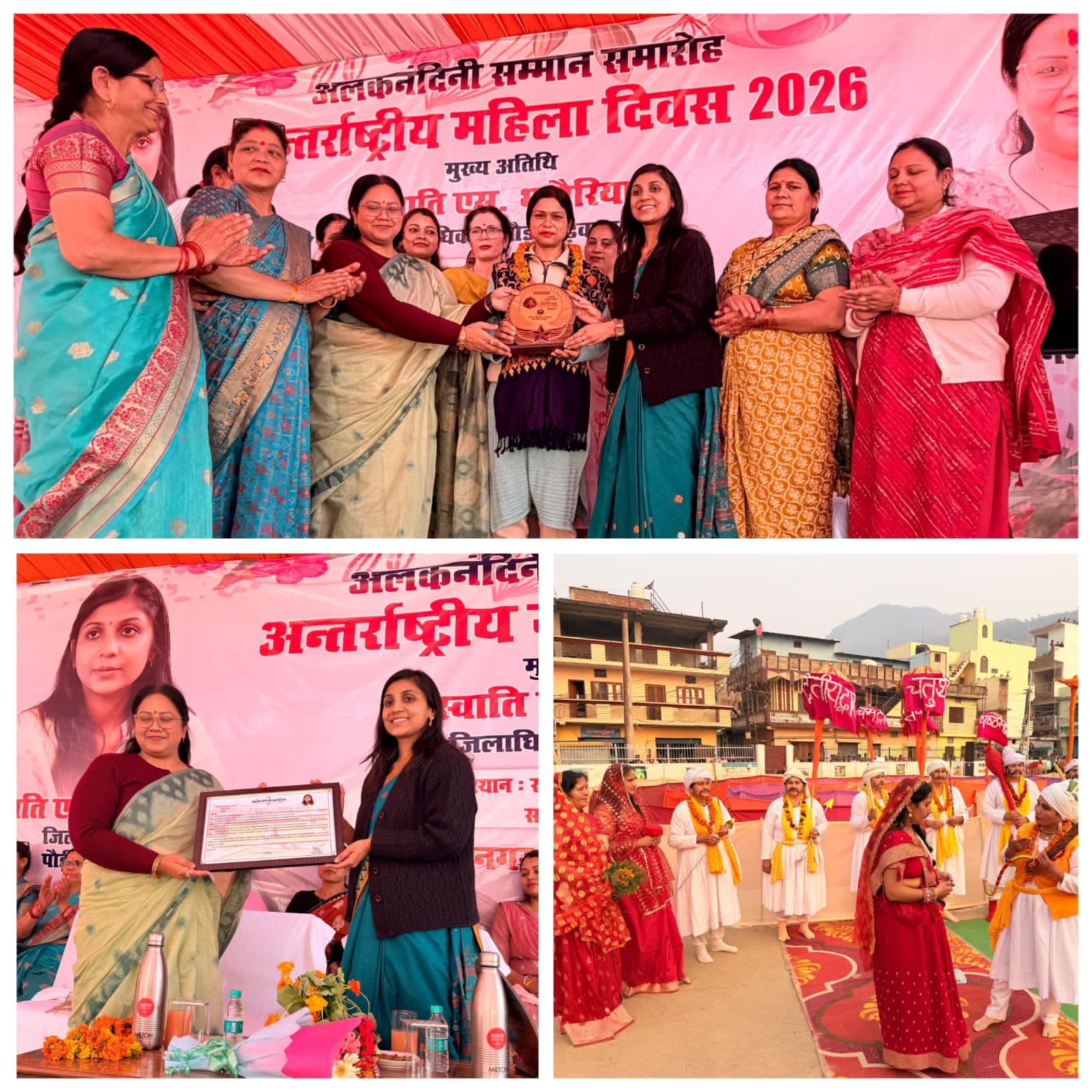 श्रीनगर गढ़वाल। अंतर्राष्ट्रीय महिला दिवस की पूर्व संध्या पर नगर निगम श्रीनगर द्वारा आयोजित अलकनंदनी सम्मान समारोह में नगर क्षेत्र में विभिन्न क्षेत्रों में उल्लेखनीय योगदान देने वाली 31 प्रेरणादायी महिलाओं को सम्मानित किया गया। इस अवसर पर सामाजिक सेवा,शिक्षा,स्वास्थ्य,खेल,प्रशासन,स्वरोजगार,पर्यावरण संरक्षण तथा महिला सशक्तिकरण के क्षेत्र में उत्कृष्ट कार्य करने वाली महिलाओं को प्रशस्ति पत्र प्रदान कर उनका अभिनंदन किया गया। कार्यक्रम में मुख्य अतिथि के रूप में उपस्थित जिलाधिकारी पौड़ी स्वाति एस भदौरिया को महापौर आरती भण्डारी द्वारा अलकनंदनी प्रशस्ति पत्र भेंट कर सम्मानित किया गया। इसके साथ ही नगर को स्वच्छ और सुंदर बनाए रखने में महत्वपूर्ण भूमिका निभाने वाली महिला पर्यावरण मित्रों को भी विशेष रूप से सम्मानित किया गया। सम्मान समारोह के उपरांत मां नंदा महिला रामलीला मांगल योग समिति द्वारा प्रस्तुत महिला चक्रव्यूह नाट्य मंचन कार्यक्रम का मुख्य आकर्षण रहा। इस प्रभावशाली प्रस्तुति के माध्यम से समाज में महिलाओं की चुनौतियों, संघर्षों और उनकी शक्ति को दर्शाया गया। दर्शकों ने इस मंचन को खूब सराहा और इसे महिला सशक्तिकरण का प्रेरणादायक संदेश बताया। कार्यक्रम को संबोधित करते हुए जिलाधिकारी स्वाति एस.भदौरिया ने कहा कि अंतर्राष्ट्रीय महिला दिवस केवल उत्सव का दिन नहीं,बल्कि महिलाओं के अधिकार,सम्मान और समान अवसरों के प्रति समाज की प्रतिबद्धता को मजबूत करने का अवसर है। उन्होंने कहा कि आज महिलाएं शिक्षा,प्रशासन,विज्ञान,खेल,उद्यमिता और सामाजिक नेतृत्व सहित हर क्षेत्र में अपनी महत्वपूर्ण भूमिका निभा रही हैं। उन्होंने कहा कि किसी भी समाज और राष्ट्र की प्रगति महिलाओं की सक्रिय भागीदारी के बिना संभव नहीं है। इसलिए महिलाओं को शिक्षा,स्वास्थ्य,सुरक्षा और आर्थिक आत्मनिर्भरता से जोड़ना अत्यंत आवश्यक है। सरकार द्वारा संचालित विभिन्न योजनाओं के माध्यम से महिलाओं को आत्मनिर्भर बनाने का लगातार प्रयास किया जा रहा है। महापौर आरती भण्डारी ने कहा कि नगर निगम श्रीनगर महिलाओं के सम्मान और उनके सशक्तिकरण के लिए निरंतर प्रयासरत है। उन्होंने कहा कि महिलाओं को स्वरोजगार,स्वच्छता,सामाजिक जागरूकता और सामुदायिक विकास से जोड़ने के लिए विभिन्न स्तरों पर योजनाएं संचालित की जा रही हैं। ऐसे सम्मान समारोह समाज में सकारात्मक वातावरण तैयार करते हैं और महिलाओं को अपनी प्रतिभा के साथ आगे बढ़ने की प्रेरणा देते हैं। नगर आयुक्त नूपुर वर्मा ने कहा कि नगर की स्वच्छता,सामाजिक जागरूकता और सामुदायिक विकास में महिलाओं की भूमिका अत्यंत महत्वपूर्ण है। विशेष रूप से महिला पर्यावरण मि