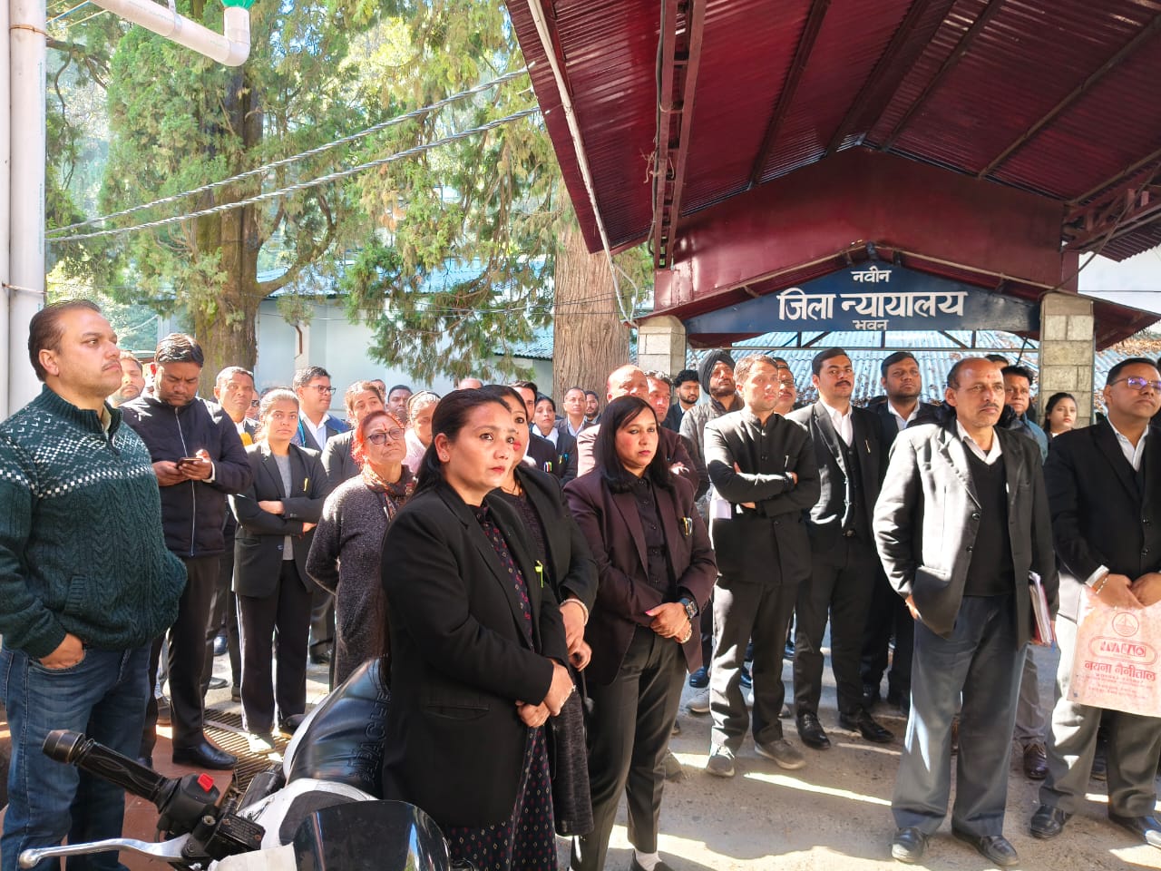 नैनीताल। बार काउंसिल के आवाहन पर शनिवार को प्रदेशभर में अधिवक्ताओं ने पूर्ण कार्य बहिष्कार किया नैनीताल बार संघ ने भी इस बंद का पूर्ण समर्थन देते हुए न्यायिक कार्यों से स्वयं को विरत रखा कार्य बहिष्कार के दौरान आयोजित सभा मे अधिवक्ताओं ने एकजुट होकर एकस्वर में अपनी विभिन्न मांगों को मजबूती से उठाया सभा को संबोधित करते हुए बार संघ के सचिव दीपक रुबाली ने कहा कि अधिवक्ताओं को अपने अधिकारों और समस्याओं को लेकर एकजुट रहना होगा, ताकि सरकार के समक्ष उनकी आवाज़ मजबूत रूप से पहुँचे वरिष्ठ अधिवक्ता एवं पूर्व अध्यक्ष नीरज साह ने प्रदेशव्यापी बंद के समर्थन देते हुवे कहा की अधिवक्ताओं के लिए हर जिले तहसील और ब्लॉक स्तर पर उचित चैम्बर निर्माण अत्यंत आवश्यक है उन्होंने जूनियर अधिवक्ताओं के हितों की रक्षा के लिए ठोस नीतिगत कदम उठाने की बात कही साथ ही उन्होंने नोटरी अधिवक्ताओं के लाइसेंस की अवधि 10 वर्ष से आगे बढ़ाने की मांग भी उठाई सभा को संबोधित करते हुए पूर्व अध्यक्ष ओंकार गोस्वामी ने कहा कि अधिवक्ताओं की समस्याएँ लंबे समय से सरकार के संज्ञान में है जिनका सरकार को प्राथमिकता से समाधान करना चाहिए सभा को अधिवक्ता संजय सुयाल तरुण चंद्रा रवि आर्या ने संबोधित करते हुवे स्पष्ट किया कि उनका वर्तमान आंदोलन पूरी तरह शांतिपूर्ण है लेकिन यदि मांगो पर कार्यवाही नही की गई तो आंदोलन को और अधिक तीव्र किया जाएगा। इस दौरान डी जी सी सुशील कुमार शर्मा पंकज सिंह बिष्ट भरत भट्ट राजीव साह राजेन्द्र कुमार पाठक राम सिंह रौतेला पुलक अग्रवाल प्रमोद बहुगुणा आर्चित गुप्ता पंकज आर्या सुभाष जोशी प्रदीप कुमार हरेन्द्र सिंह दीपक सिंह दानु जयंत नैनवाल गौरव कुमार नीरज गोस्वामी प्रमोद तिवारी आनंद कनवाल मोहम्मद खुर्शीद प्रमोद कुमार प्रीति साह पूजा साह आकांशा सरिता बिष्ट किरन आर्या संध्या जया आर्या सहित अनेको अधिवक्ता मौजूद रहे।