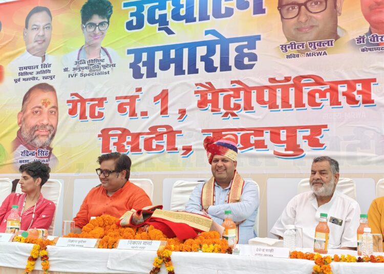 उपस्थित जनसमूह को संबोधित करते हुए महापौर विकास शर्मा ने कहा मेट्रोपोलिस सिटी के निवासियों ने अपने निजी प्रयासों और आपसी सहयोग से इस भव्य गेट का निर्माण कर पूरे शहर के सामने एक अनुकरणीय उदाहरण पेश किया है। यह न केवल कॉलोनी की सुंदरता बढ़ाएगा, बल्कि यहां लगे बूम बैरियरों से कॉलोनी की सुरक्षा व्यवस्था भी अभेद्य हो जाएगी। सुरक्षा के लिहाज से यह एक सराहनीय पहल है।