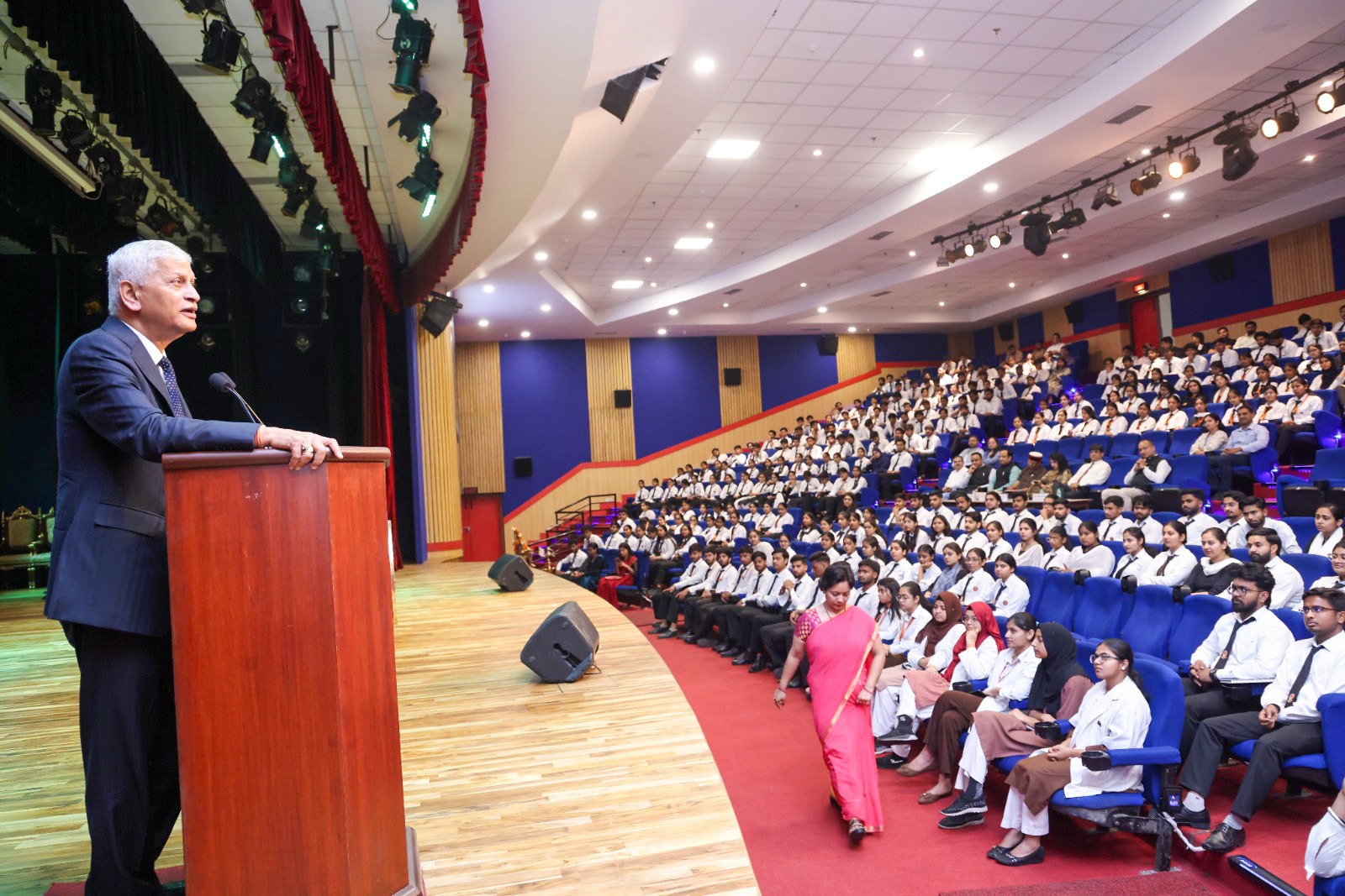 न्यायमूर्ति श्री ललित ने तीन तलाक कानून पर बेहद संक्षिप्त एवम् सारगर्भित बोलते हुए कहा, न्यायपालिका की ओर से तीन तलाक को असंवैधानिक घोषित करने से मुस्लिम महिलाओं को न्याय, सम्मान और समान अधिकार प्राप्त हुए, जिससे उनकी राष्ट्र निर्माण में भागीदारी और अधिक सशक्त हुई। उल्लेखनीय है, तीन तलाक कानून को असंवैधानिक पारित करने वाली पांच सदस्यीय बेंच में न्यायमूर्ति श्री यूयू ललित भी शामिल थे। उन्होंने कहा कि प्राथमिक स्तर तक निःशुल्क एवं अनिवार्य शिक्षा को मौलिक अधिकार बनाया जाना लोकतंत्र को मजबूत करने की दिशा में एक ऐतिहासिक निर्णय है, जिससे प्रत्येक बच्चे को शिक्षा का अधिकार सुनिश्चित हुआ है। शिक्षा क्षेत्र में निजी संस्थानों की भागीदारी से शिक्षा के अवसरों का विस्तार हुआ है, जिससे स्टुडेंट्स को बेहतर संसाधन एवं गुणवत्तापूर्ण शिक्षा प्राप्त हो रही है। टाक सीरीज-18 में प्रो. एमपी सिंह, प्रो. नवनीत कुमार, प्रो. सुशील सिंह, डॉ. अमित कंसल के संग-संग लॉ, एलाइड हैल्थसाइंसेज़ कॉलेज आदि के स्टुडेंट्स भी मौजूद रहे। टाक सीरीज में स्टुडेंट्स ने न्यायमूर्ति श्री उदय उमेश ललित से सवाल भी पूछे। संचालन डॉ. नेहा आनन्द ने किया।