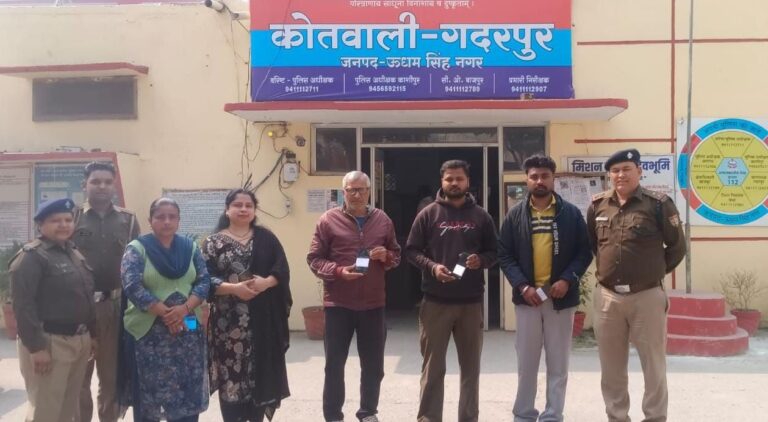 गदरपुर । कोतवाली गदरपुर पुलिस ने थाना क्षेत्र से विभिन्न तिथियों में गुम हुए मोबाइल फोनों की बरामदगी में उल्लेखनीय सफलता हासिल की है। पुलिस ने सीईआईआर (Central Equipment Identity Register) पोर्टल के माध्यम से एक आईफोन सहित कुल 16 मोबाइल फोन,जिनकी अनुमानित कीमत लगभग 2,75,000 रुपये है,महज एक माह के भीतर बरामद कर उनके स्वामियों को सुपुर्द कर दिए। मोबाइल वापस पाकर लोगों के चेहरों पर खुशी साफ दिखाई दी और उन्होंने पुलिस का आभार व्यक्त किया।