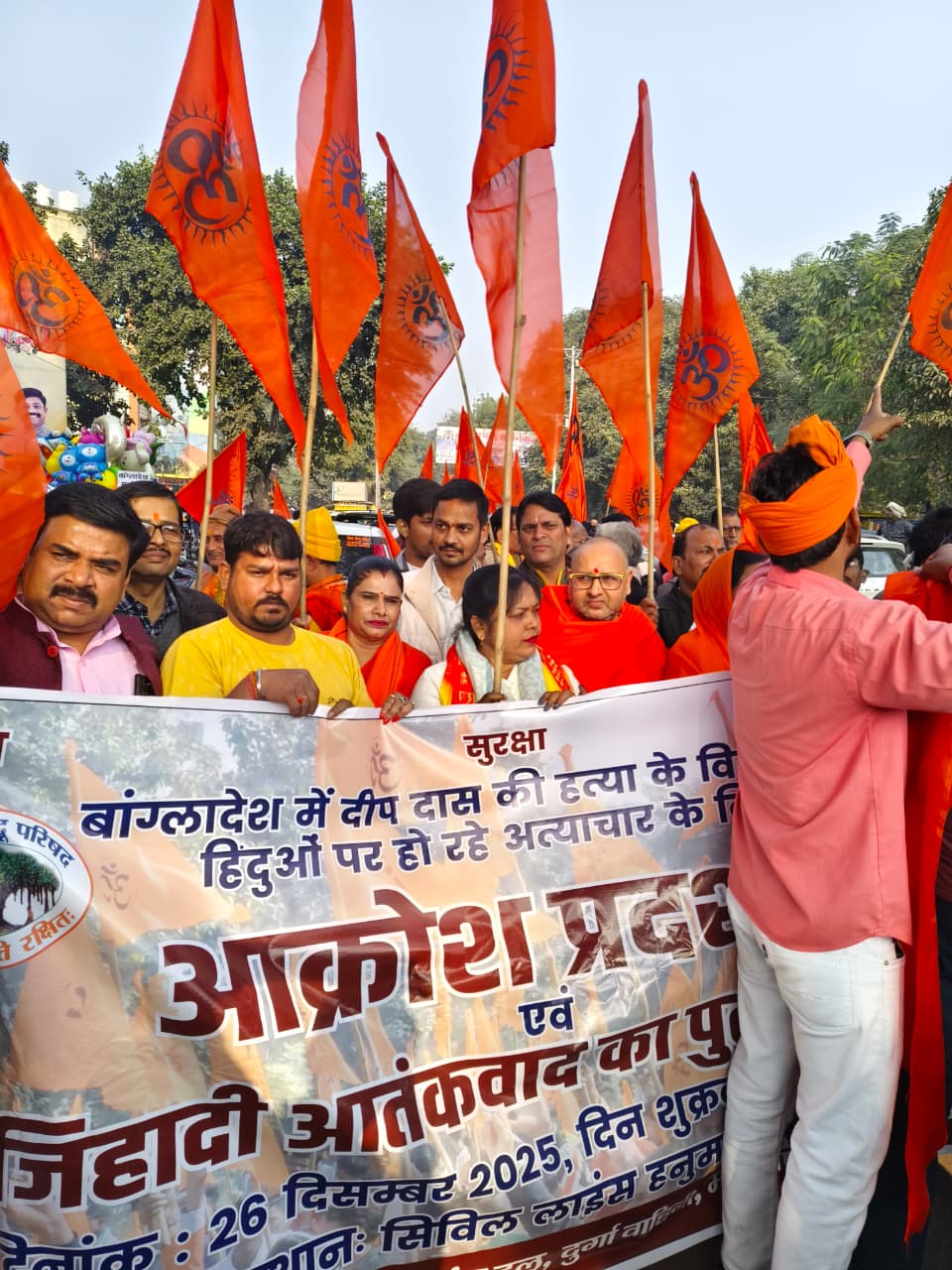 महामंडलेश्वर श्री श्री 1008 डॉक्टर रमन पूरी जी व अन्य पूजनीय महामंडलेश्वर, संत, प्रयागराज मे सभा का आयोजन कर बंगलादेश मे सनातनी हिन्दुओं के साथ हो रहे अत्याचार के खिलाफ आवाज बुलंद की है!पूरी जी महाराज ने बंगलादेश सरकार को मिडिया से रूबरू होकर भारत के सनातनी आदरणीय प्रधानमंत्री मोदी जी से आग्रह किया है की हमारे सनातनी हिन्दू परिवारों को तुरंत सुरक्षा प्रदान करवाके सनातन धर्म के प्रति अपनी सहभागिता निभाए