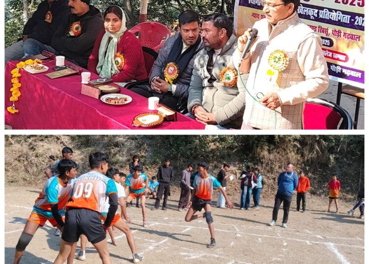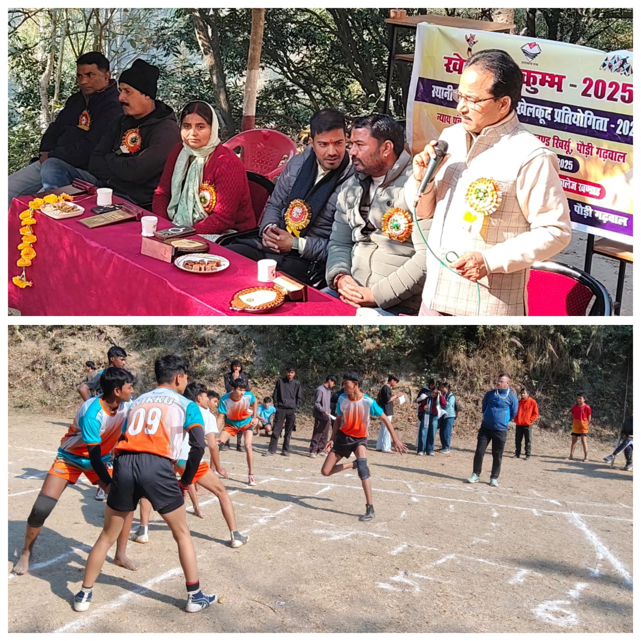 श्रीनगर गढ़वाल। खेलों के माध्यम से अनुशासन,आत्मविश्वास और नेतृत्व क्षमता का विकास होता है,इसी उद्देश्य को साकार करता हुआ खेल महाकुंभ 2025 न्याय पंचायत चमराडा में खेल प्रतिभाओं के लिए उत्सव बनकर सामने आया। ग्रामीण अंचल के होनहार खिलाड़ियों ने मैदान में पसीना बहाकर यह सिद्ध कर दिया कि सीमित संसाधनों के बीच भी प्रतिभा किसी परिचय की मोहताज नहीं होती। इसी प्रेरक वातावरण में कारगिल शहीद कुलदीप सिंह राजकीय इंटर कॉलेज खण्डाह में खेल महाकुंभ का भव्य आयोजन किया गया। आज दिनांक 28 दिसम्बर 2025 को कारगिल शहीद कुलदीप सिंह राजकीय इंटर कॉलेज खण्डाह विकास खण्ड खिर्सू में न्याय पंचायत चमराडा का खेल महाकुंभ-2025 उत्साह,अनुशासन और खेल भावना के साथ सम्पन्न हुआ। कार्यक्रम का शुभारंभ मुख्य अतिथि ब्लॉक प्रमुख खिर्सू अनिल भण्डारी,ज्येष्ठ प्रमुख नितिन रावत,पीटीए अध्यक्ष वीना देवी एवं प्रधानाचार्य विक्रम सिंह नेगी की गरिमामयी उपस्थिति में हुआ। अतिथियों ने खिलाड़ियों से परिचय प्राप्त कर उनका उत्साहवर्धन करते हुए कहा कि खेल युवाओं के सर्वांगीण विकास की मजबूत नींव हैं। खेल महाकुंभ के अंतर्गत अंडर-14 एवं अंडर-19 बालक एवं बालिका वर्ग में खो-खो,कबड्डी,मुर्गा झपट एवं एथलेटिक्स की रोमांचक प्रतियोगिताएं आयोजित की गई। खिलाड़ियों ने पूरे जोश,अनुशासन और खेल भावना के साथ प्रतियोगिताओं में भाग लिया। इस अवसर पर मुख्य अतिथि ब्लॉक प्रमुख खिर्सू अनिल भण्डारी ने अपने संबोधन ने कहा कि खेल महाकुंभ जैसे आयोजन ग्रामीण अंचल के युवाओं में छिपी प्रतिभाओं को मंच प्रदान करते हैं। उन्होंने कहा कि खेलों से न केवल शारीरिक विकास होता है बल्कि अनुशासन,आत्मविश्वास और टीम भावना का भी विकास होता है। उन्होंने सभी प्रतिभागियों को उज्जवल भविष्य की शुभकामनाएं देते हुए खेलों को निरंतर जीवन का हिस्सा बनाने का आह्वान किया। तथा मुख्य अतिथि अनिल भण्डारी द्वारा व्यायाम शिक्षिका पूजा जोशी नवाखाल को सम्मानित किया गया। उल्लेखनीय है कि पूजा जोशी ने अखिल भारतीय सर्विसेज खेल प्रतियोगिता की रिले दौड़ में प्रथम स्थान प्राप्त कर क्षेत्र, जनपद और राज्य का गौरव बढ़ाया है। अंडर-19 बालक वर्ग (3000 मीटर दौड़ में प्रथम ऋतिक खण्डाह,द्वितीय मयंक रावत,तृतीय अभिषेक,अंडर-14 बालक वर्ग परिणाम 60 मीटर दौड़ में प्रथम अनमोल कुमार,द्वितीय नूर अमन,तृतीय आयुष,लम्बी कूद में प्रथम अनमोल कुमार,द्वितीय नूर अहमद,तृतीय युवराज,600 मीटर दौड़ में प्रथम प्रिंस कुमार,द्वितीय आयुष कुमार,तृतीय आयुष राणा,ऊंची कूद में प्रथम प्रिंस पंवार,गोला फेंक में प्रथम अलंकृत रावत,अंडर-14 बालिका वर्ग परिणाम लम्बी कूद में प्रथम अदिति कण्डारी,60 मीटर दौड़ में प्रथम अनुष्का,ऊंची कूद में प्