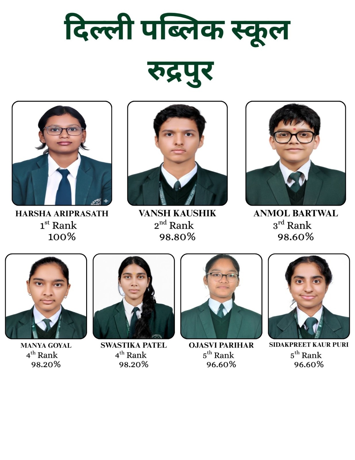 वंश कौशिक (98.8%), अनमोल बर्तवाल (98.6%), मान्या गोयल (98.2%), स्वस्तिका पटेल (98.2%),