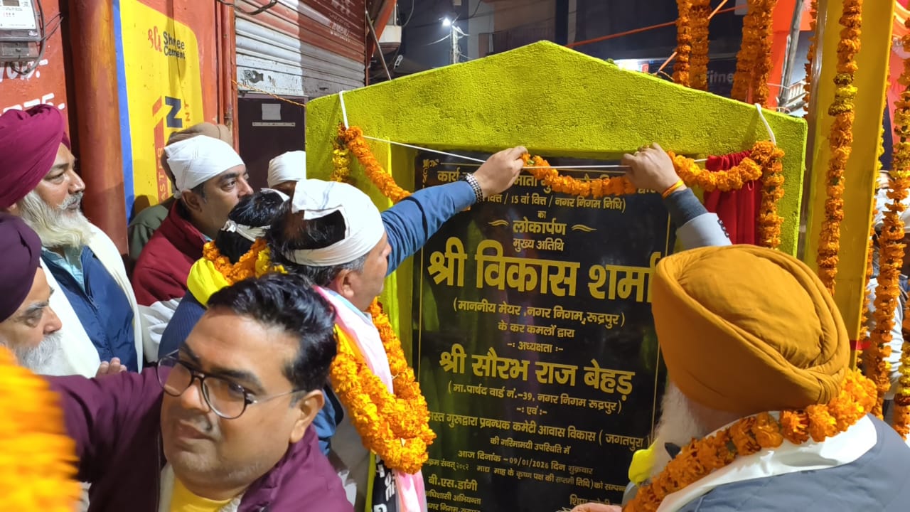 रुद्रपुर। मुख्यमंत्री पुष्कर सिंह धामी के ‘विकसित उत्तराखंड’ के विजन को धरातल पर उतारते हुए नगर निगम रुद्रपुर ने शहर के बुनियादी ढांचे और सौंदर्यीकरण की दिशा में एक और महत्वपूर्ण उपलब्धि हासिल की है। वार्ड संख्या 39, जगतपुरा में जनभावनाओं के प्रतीक ‘माता गुजर कौर द्वार’ का का महापौर विकास शर्मा ने विधिवत फीता काटकर लोकार्पण किया। इस दौरान गुरूद्वारा प्रबंधक कमेटी आवास विकास जगतपुरा और स्थानीय निवासियों ने महापौर विकास शर्मा और वार्ड के पार्षद सौरभ राज बेहड़ का फूल मालाओं से स्वागत किया और उन्हें शॉल ओढाकर सम्मानित किया। इस दौरान द्वार निर्माण की मांग पूरी होने पर मिष्ठान भी वितरित किया गया।