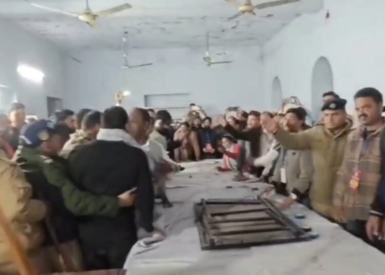मतपेटियों की सुरक्षा को लेकर प्रत्याशियों के समर्थकों के बीच पहरा देने पर सहमति बनी। जानकारी के अनुसार अध्यक्ष एवं मंत्री पद के प्रत्याशियों की मतगणना अभी शेष है, जबकि कोषाध्यक्ष पद की मतगणना पूरी हो चुकी है। इसी के बाद एक पक्ष के समर्थकों ने विरोध शुरू कर दिया, जिससे माहौल और अधिक तनावपूर्ण हो गया।